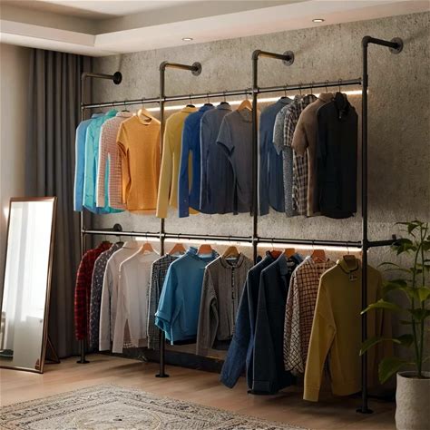 Ulspeed Wall Mounted Clothes Rack 60In, Industrial Pipe Clothing Racks Wall Mount, Heavy Duty Detachable Iron Garment Bar, Saving Space, Multi-Purpose