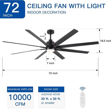 18.9" Larger Size RGB Fan Ceiling Light Dimmable Ceiling Fan Light Black Fan Ceiling With Light With