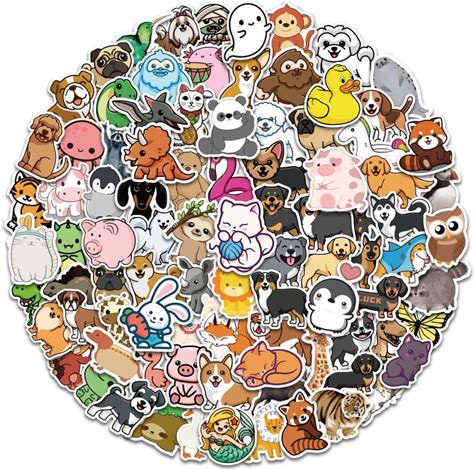 Yamobi 100 Pcs Cute Animal Stickers, Colorful Waterproof Animal Stickers, Cute Aesthetic Vinyl Stickers For Water Bottle, Laptop, Skateboard Stickers