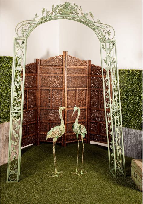 Green Metal Indoor Outdoor Arched Bird Indoor Outdoor Garden Arbor With Scrolled Vines