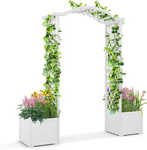 Happygrill Garden Arbor, 6.8 ft Decorative Archway Trellis With Extended Roof For Climbing Plants Vines Roses, Outdoor Arch Pergola For Wedding