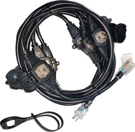 50ft 12 Gauge SJTW Power Extension Cord 3 Prong, 5-15R Male Plug To Female Connector, 6 Outlet, Multiple Evenly-Spaced Plug, Suitable For Stage