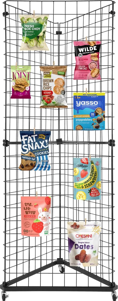 FURNITLEG Wire Grid Panel Tower, Triangle Display Stand With Base And Casters, Wire Grid Wall Display Rack, Black, Triangular Gridwall Panel Stand For